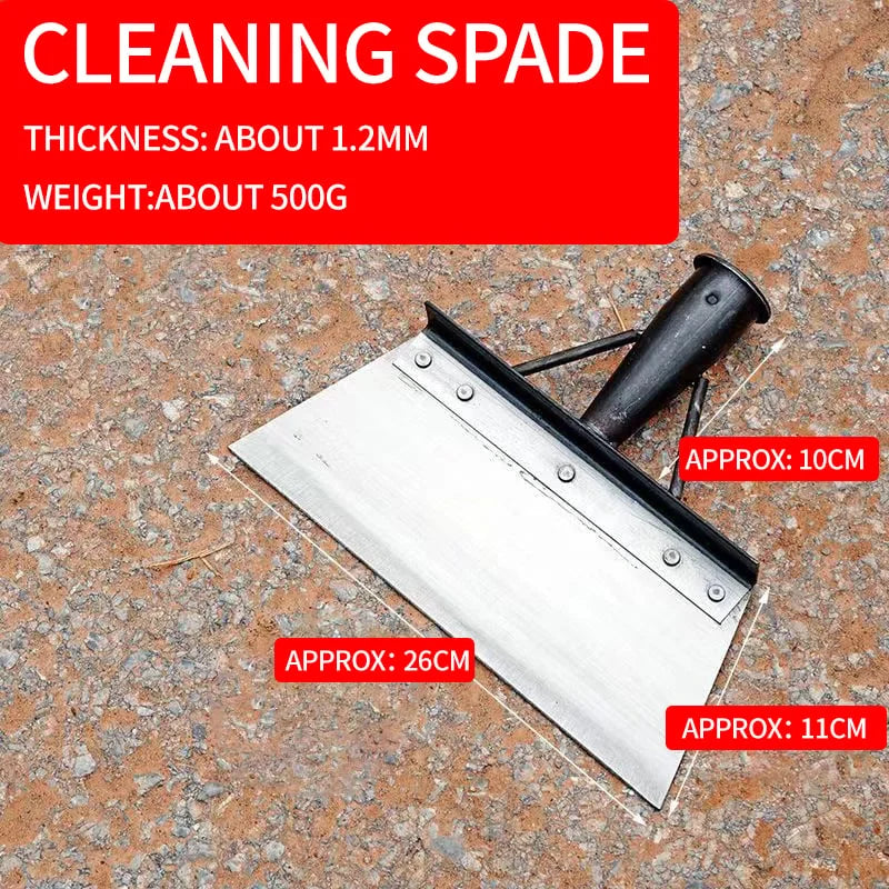 Mit ihrer scharfen Klinge aus Manganstahl und ihrem vielseitigen Design ist diese Schaufel perfekt geeignet, um hartnäckiges Unkraut und Moos zu entfernen, den Stall von Mist zu befreien, Eis zu entfernen und sogar kleine Werbeaufkleber von Böden und Wänden zu entfernen.