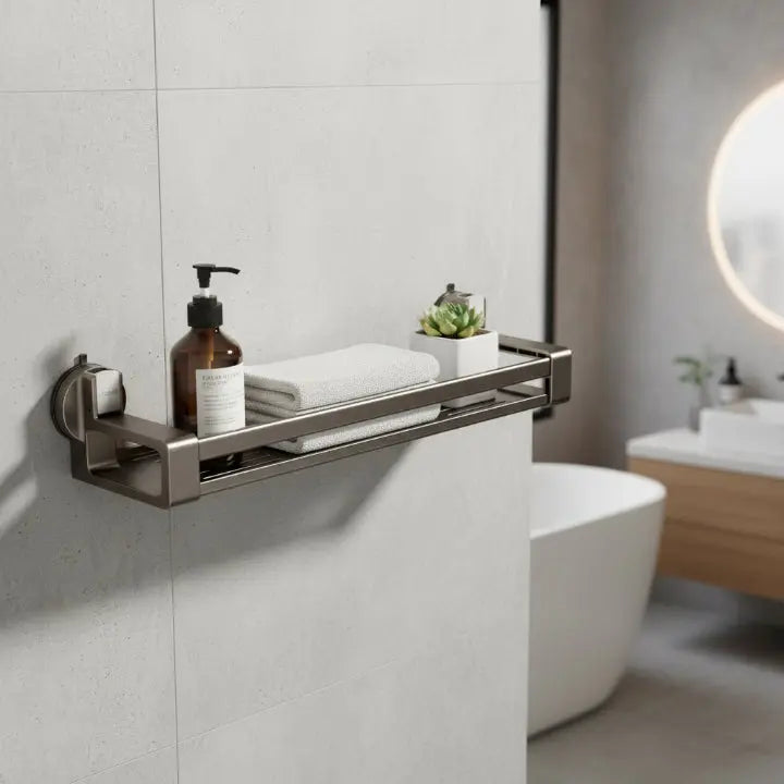 Hol dir den ultimativen Ordnungs-Booster, der dein Bad sofort auf ein neues Level hebt! Unsere CarbonSteelMax Badablage bringt dir nicht nur starken Halt und modernstes Design, sondern auch eine Installation, die so easy ist, dass du’s sofort lieben wirst. Kein Bohren, kein Werkzeug – nur kraftvolle Saugnäpfe, die bombenfest anflutschen. Deine Pflegeprodukte bleiben trocken dank cleverer Abflusslöcher – Schluss mit feuchten, schimmligen Flaschen und Dosen. Greif jetzt zu, bevor du wieder im Chaos versinkst!