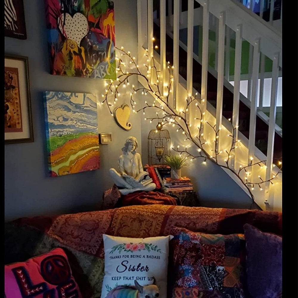 Die eleganten Zweige sind mit warmweißen LED-Lichtern versehen, die eine sanfte und angenehme Atmosphäre schaffen. Egal, ob Sie sie als dekorative Akzentbeleuchtung oder als Hauptbeleuchtung verwenden, die Elegant Willow Vine Beleuchtung ist ein Blickfang in jedem Raum.