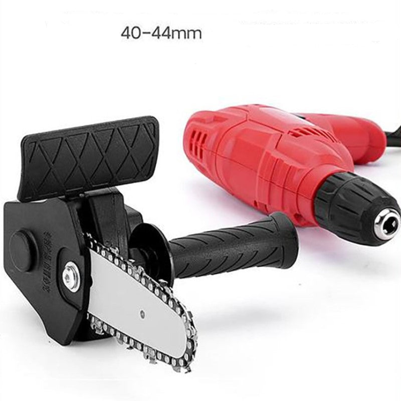 Anpassungsfähigkeit: Diese elektrische Kettensäge ist für 40-44 cm Bohrer mit mindestens 2500 U / min geeignet. Die elektrische Bohrmaschine, die zum elektrischen Kettensägen-Bohraufsatz modifiziert wurde, eignet sich sehr gut für Obstgärten, die Bäume schneiden, Äste im Garten schneiden, Bambus schneiden, Brennholz im Haushalt usw.