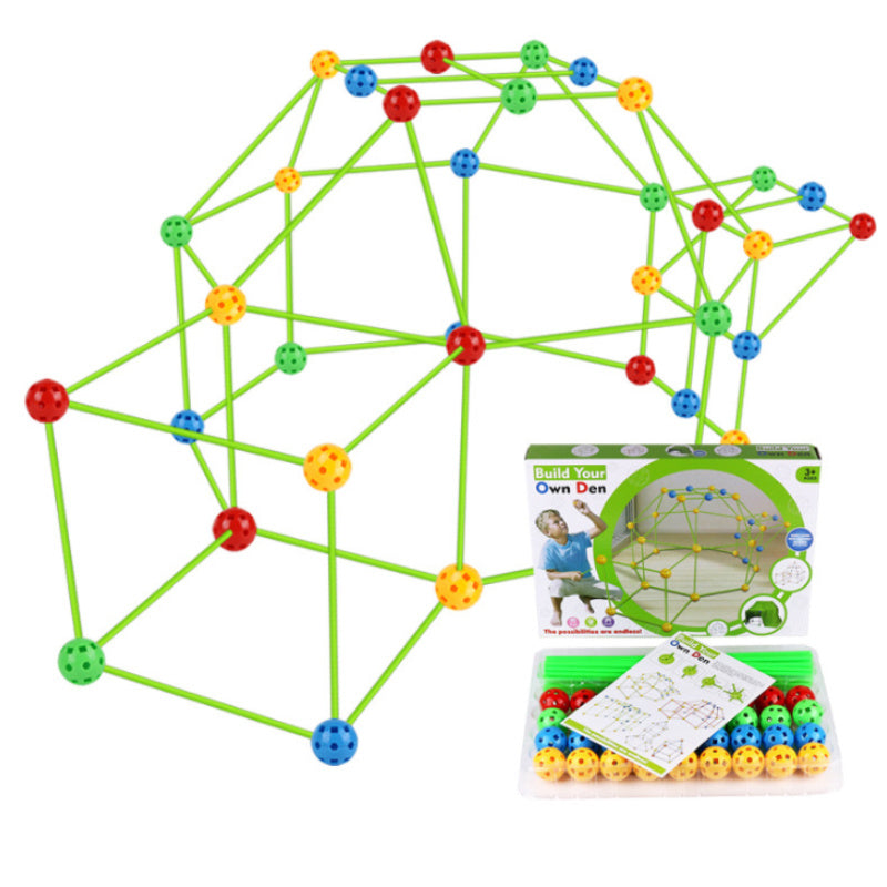 Starre Bausätze für Festungen schränken die Kreativität ein. Unserer fördert sie! Die biegsamen Stangen und Stäbe ermöglichen unbegrenzte Formen - Windhöhlen und Tunnel, Türme, Burgen und mehr. Individuelle Kreationen leicht gemacht!