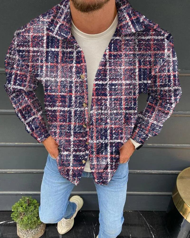 Dieses karierte Hemd mit Druck hat eine lockere Passform, die ebenso stilvoll wie bequem ist.  Der einreihige Verschluss sorgt für ein elegantes, stromlinienförmiges Finish, perfekt für stilvolle Männer.