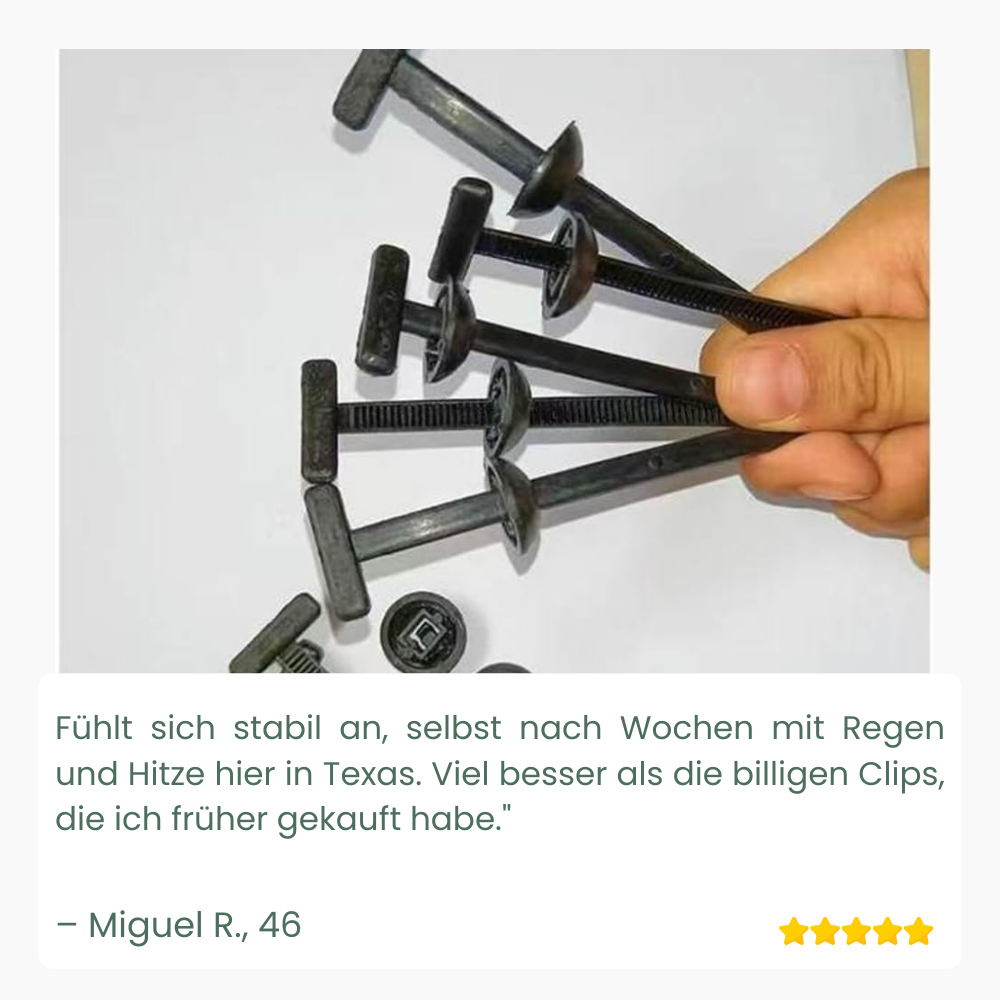 Keine Lust mehr auf fummelige Schrauben an Kotflügeln, Motor-Unterfahrschutz oder Verkleidungen? TurboFix macht’s kinderleicht – mit nur einem Klick hält alles bombenfest. 99% aller Autos? Kein Problem! Sofort einsatzbereit, komplett schrauben- und werkzeugfrei.