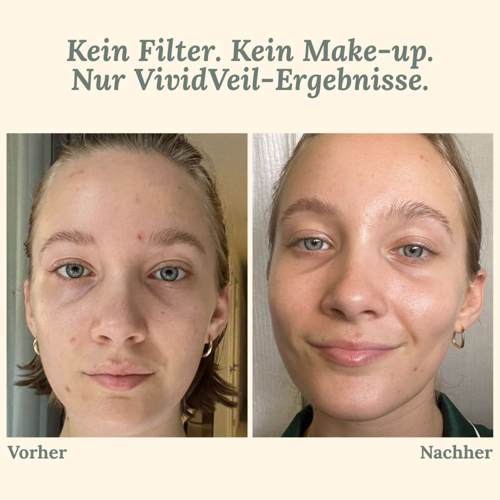 A: Bereits nach 3 Anwendungen wirst du spürbar glattere und prallere Haut merken. Viele nutzen VividVeil als ihren Geheimtipp für den WOW-Effekt vor besonderen Terminen.