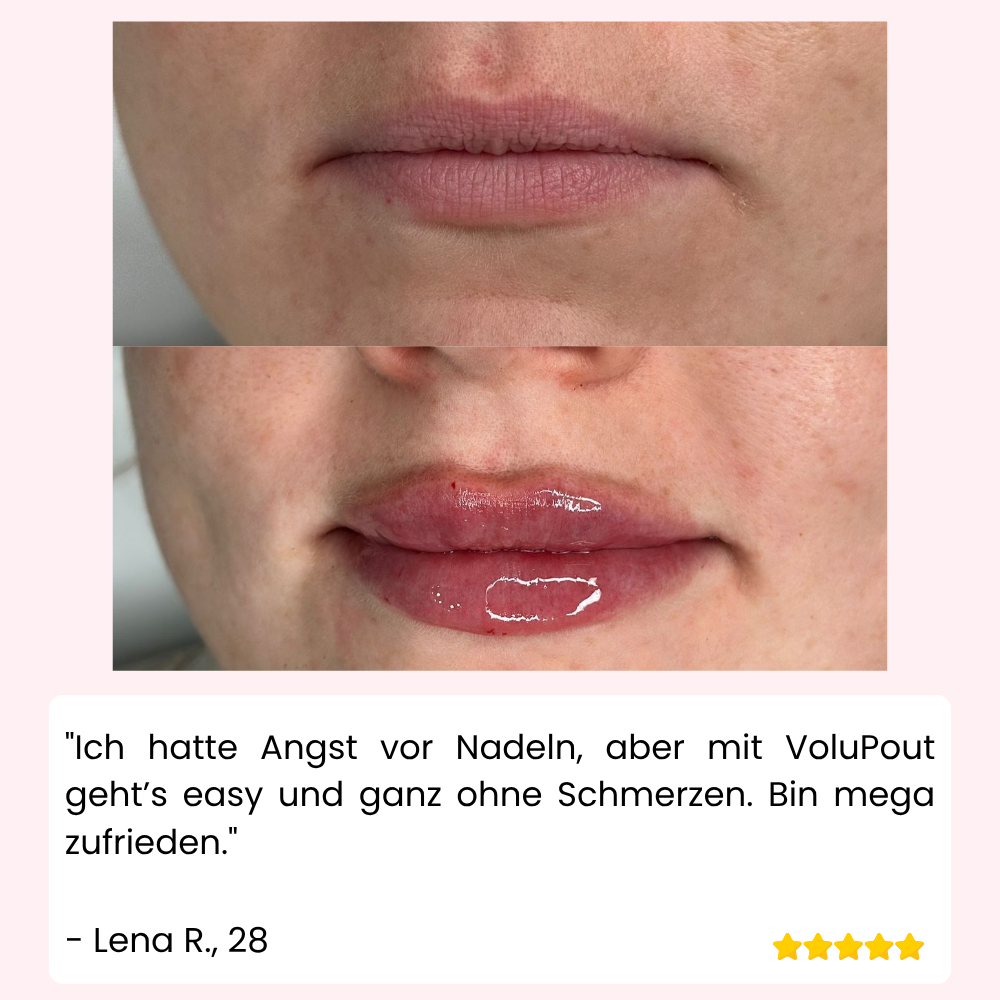 A: Absolut nicht! Ein leichtes Kribbeln ist normal, Schmerzen gibt es keine – VoluPout™ sorgt für sanften, angenehmen Effekt.